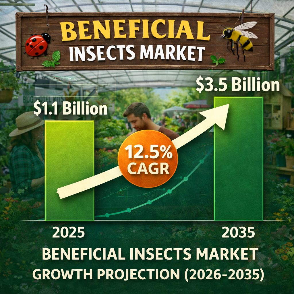 El mercado de insectos beneficiosos fue valorado en 2.5 mil millones de USD en 2025 y se proyecta que alcanzará los 5.8 mil millones de USD para 2035, experimentando una tasa de crecimiento anual compuesta (CAGR) del 8.7% durante el período 2026-2035. Esta trayectoria de crecimiento sustancial es indicativa del reconocimiento creciente del papel de estos insectos en las prácticas agrícolas sostenibles y el manejo integrado de plagas.